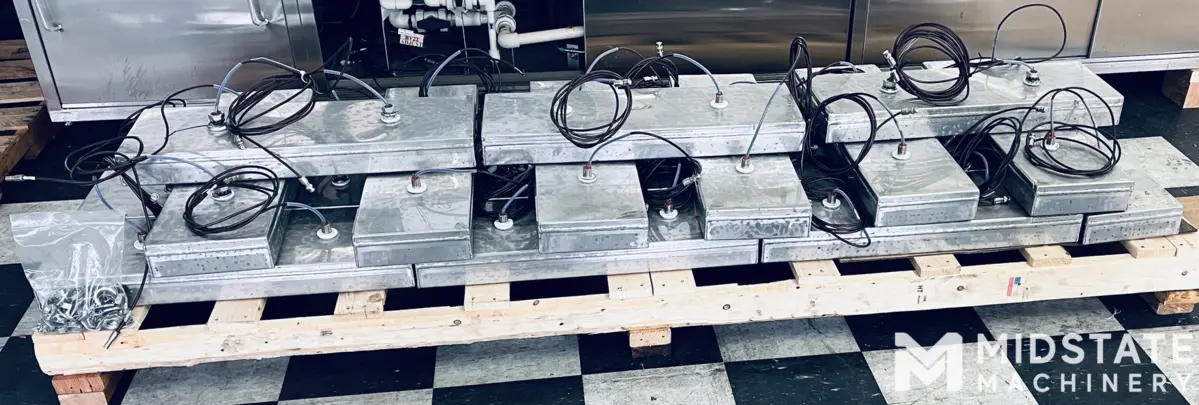 Each immersible can has two bottom side mounts where ultrasonic RF cables enter the