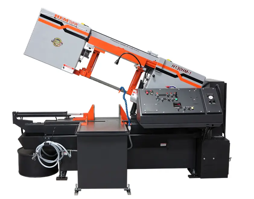 The H130M is a rugged band saw and cuts using a 1½” blade driven by a 10 HP motor. A 2 HP hydraulic motor powers the adjustable pressure full-stroking vise, the powered guide arm, and powered blade tension. Many options are also available.