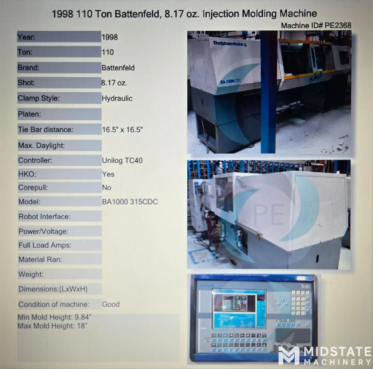 BATTENFELD BA1000/315 CDC Injection Molding Machine